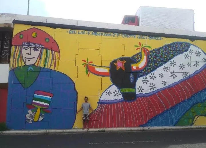 Eu tava jogando bola em um bairro pouco distante do meu e encontrei ele, né, fazendo um trabalho comercial, com graffiti, com lata de spray e tudo. E eu me interessei. Aí ele foi me explicar como é que funcionava e me perguntou se eu desenhava. E eu já desenhava. Desde o ensino fundamental, eu sempre fui um bom um bom desenhista, né? Eu tive aulas de artes plásticas, a gente pintava quadros e tudo. Então, sempre fui um um bom desenhista. Aí eu fui mostrar os desenhos que eu fazia para ele em papel, alguns quadros que eu tinha e ele se interessou também, né?