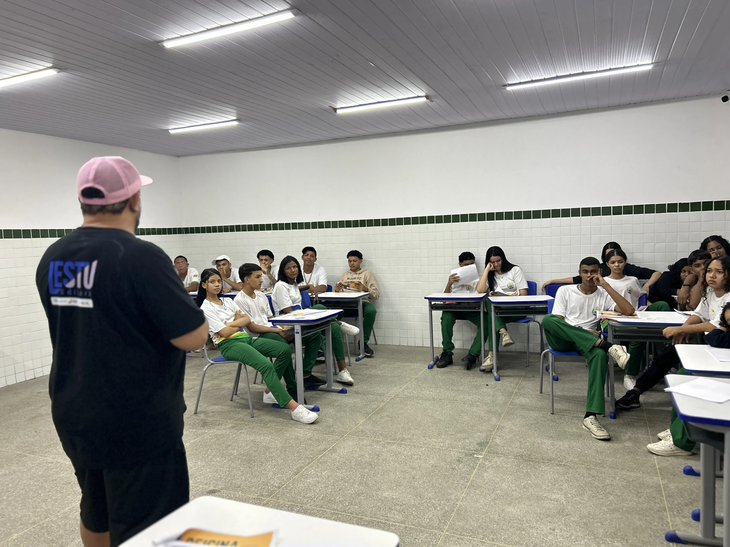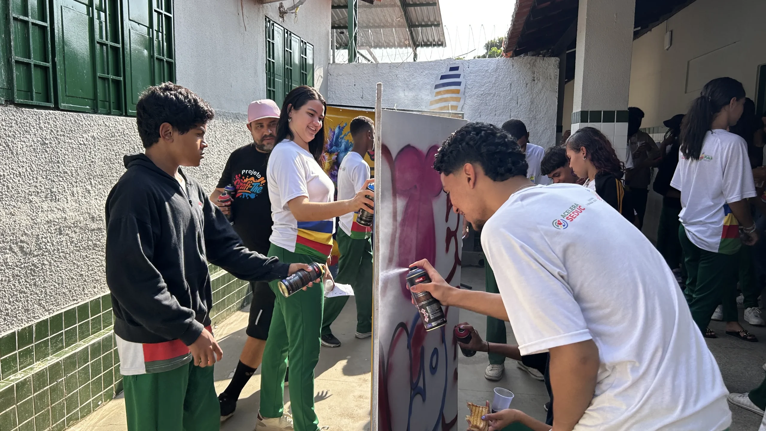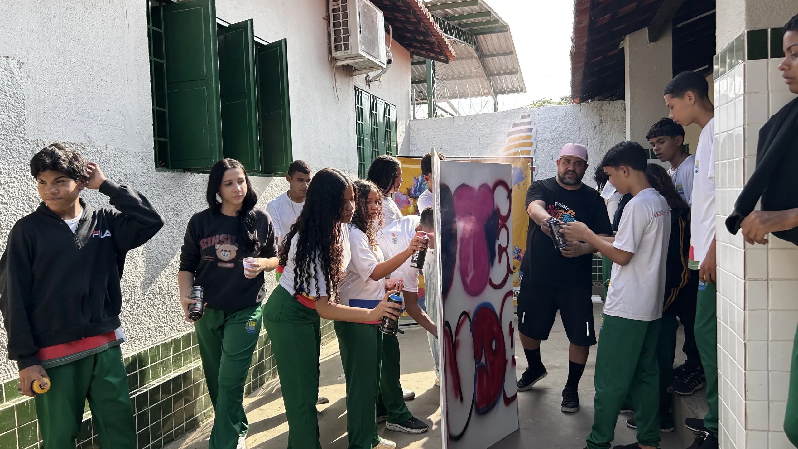 No dia 13 de setembro, o CETI Mundim Ferraz recebeu a primeira oficina de graffiti do Projeto Grafi-The, iniciativa cultural da Editora Lestu, aprovada pela Política Nacional Aldir Blanc (PNAB 2024). A atividade marcou o início de um ciclo de cinco oficinas gratuitas em escolas públicas estaduais de Teresina, abrindo espaço para que estudantes pudessem mergulhar na prática e no debate crítico em torno da arte urbana. Sob a orientação de Eduardo Alemão, artista e coordenador do coletivo VDC (Vai Dar Certo), o encontro combinou momentos de formação teórica e aplicação prática. A proposta foi apresentar o graffiti não apenas como técnica, mas como linguagem social, histórica e política, capaz de ressignificar os espaços e ampliar o horizonte cultural da juventude.